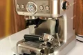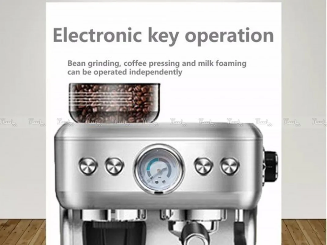 مخزن این دستگاه دارای ظرفیت 2.5 لیتر می باشد. ویژگی منحصربه فرد این دستگاه ، داشتن یک آسیاب قهوه با تیغه های استیل ضدزنگ و با دقت خیلی بالا بوده که می تواند قهوه را تا 10 درجه آسیاب کرده و در سه مرحله ریز ، متوسط و درشت در اختیار ظما قرار دهد.این ویژگی باعث شده که دیگر نیاز به خرید آسیاب در کنار دستگاه قهوه ساز نباشد و همچین از لحاظ اقتصادی و فضای اشغال شده در خانه یا کافه شما ، بهترین انتخاب می باشد. در جلوی این دستگاه یک عدد عقربه وجود داشته ک نشان دهنده فشار بخار پمپ داخل دستگاه در زمانی که پمپ در سرویس قرار گرفته می باشد که زیبایی خاصی را به این دستگاه داده است.