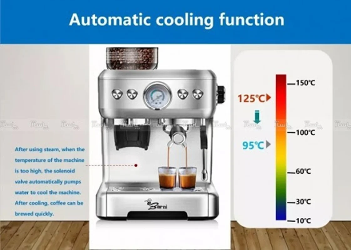 یکی دیگر از ویژگی های این دستگاه داشتن سیستم سردسازی می باشد . این سیستم به گونه ای است که بعد از استفاده از بخار ، بدلیل گرمای بالای دستگاه ، یک شیر برقی سیستم خنک سازی را در سرویس قرار میدهد که باعث خنک کردن دستگاه شده و براحتی می توانید جهت گرفتن قهوه مجدد از دستگاه استفاده کنید. این دستگاه دارای سستم گرمکن فنجان بوده که می توانید از آن استفاده کنید.بارنی 5700 دارای دوعدد سیستم کنترل کننده دما ( بویلر ) بده که به عنوان یک ویژگی منحصربه فرد می توان از آن نام برد.
