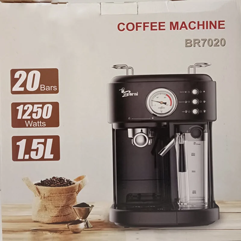 دستگاه اسپرسوساز بارنی BR-7020 این اسپرسو ساز منحصر به فرد دارای وزنی معادل پنج کیلو گرم می باشد. ابعاد آن نیز 220*320*290 میلی متر است. بدنه ی این اسپرسو ساز را از فلز و پلاستیک فشرده ساخته اند. یکی از ویژگی های مهم برای هر اسپرسو ساز از جمله اسپرسو ساز بارنی BR-7020 گنجایش مخزن آن می باشد. ظرفیت مخزن این اسپرسو ساز 1.6 لیتر است.این ظرفیت برای یک اسپرسوساز خانگی می تواند ایده آل باشد . مدرج بودن مخزن آب این اسپرسوساز بارنی مدل BR 7020 به شما کمک می کند تا هر لحظه بتوانید میزان آب موجود در مخزن را مشاهده نمایید.