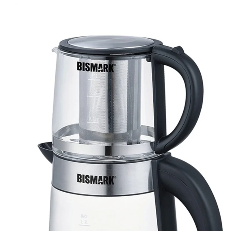 چایساز بیسمارک مدل BM 2281 محصولی کارآمد و خوش ساخت و ساخت کشور آلمان است.کتری و قوری این چای ساز با طراحی شفاف، از جنس شیشه است تا شما بتوانید براحتی از میزان محتویات ان اگاه شوید، فیلتر قوری از جنس استیل است و تفاله چای و دمنوش را از نوشیدنی جدا میکند. توان مصرفی این چای ساز 2200 وات و همچنین دارای چرخش 360 درجه است.