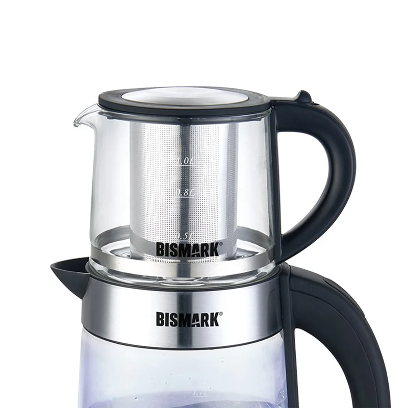 چای ساز بیسمارک مدل BM2312 محصولی کارآمد و خوش ساخت و ساخت کشور آلمان است.کتری و قوری این چای ساز با طراحی شفاف، از جنس شیشه است تا شما بتوانید براحتی از میزان محتویات ان اگاه شوید، فیلتر قوری از جنس استیل است و تفاله چای و دمنوش را از نوشیدنی جدا میکند.
