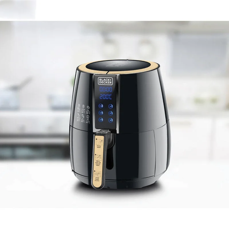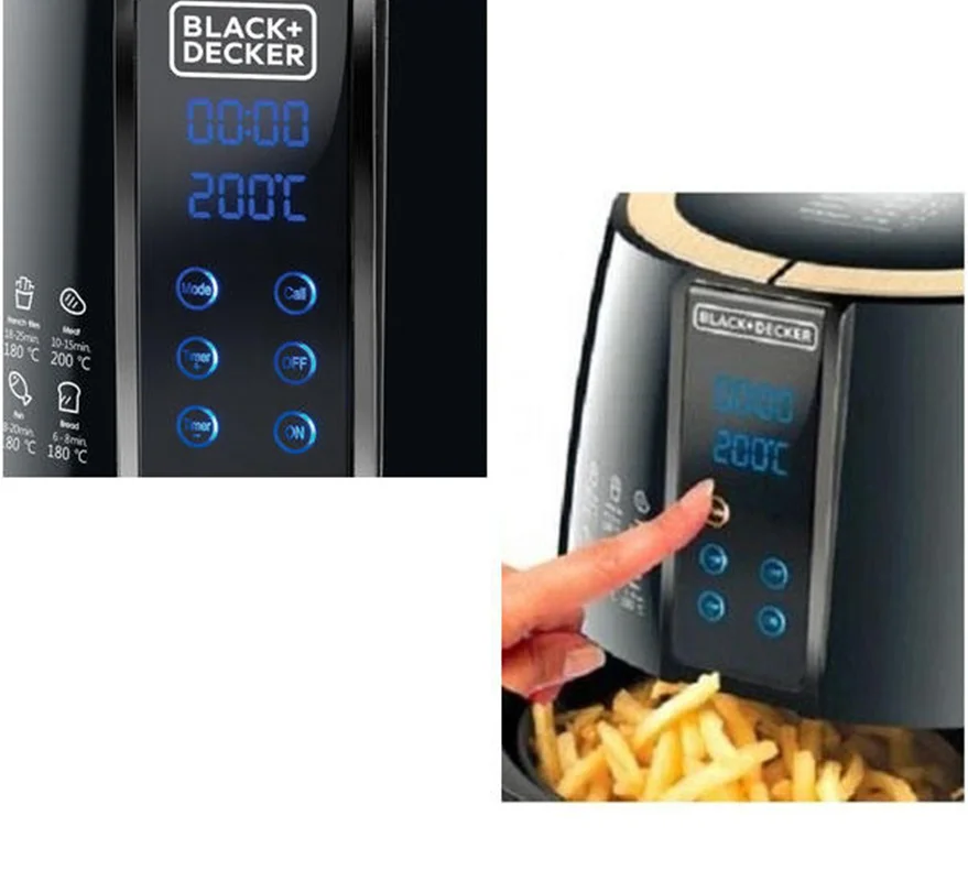 با استفاده صفحه دیجیتال لمسی در بالای دستگاه، میتوان تمام امکانات آن را در اختیار گرفت و دما و زمان شروع و پایان فعالیت سرخ کن بلک اند دکر مدل AF400 را تعیین کرد. لازم به تاکید است که این سرخکن بهعنوان سرخکن بدون روغن به بازار عرضه شده، ولی برای پخت، مقدار اندکی روغن نیاز است.
