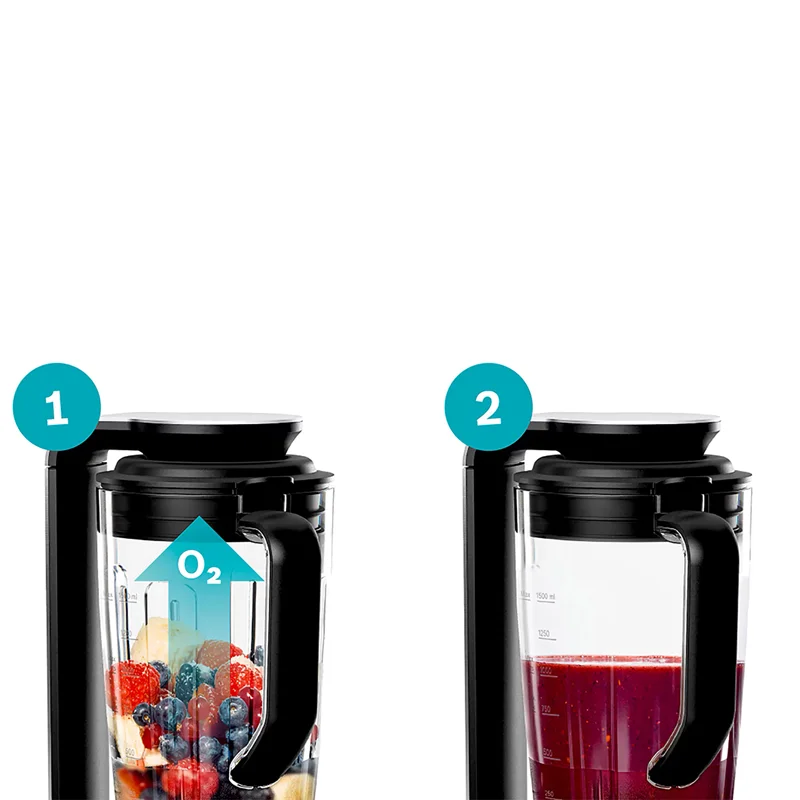 اسموتی ها معمولاً پس از مخلوط شدن، به سرعت رنگ، بافت و ویتامین های خود را از دست می دهند. با استفاده از فن آوری مخلوط شدن در خلا، مواد با اکسیداسیون کمتری میکس می شود. بنابراین اسموتی های خلا، 5 برابر ویتامین C موجود در آنها را تا 24 ساعت حفظ می کند. به بیانی بهتر، زمان نگهداری اسموتی ها و سایر غذاها محدود است و تهیه اسموتی در صبح ممکن است بسیار وقت گیر و آزار دهنده باشد. به لطف بطری تریتان بادوام ToGo می توان اسموتی ها را برای مدت بیشتری تازه نگه داشت و بعداً از نوشیدن آن لذت برد. در نتیجه، به لطف مخلوط کن VitaMaxx می توان اسموتی های متنوعی را با بافت عالی و رنگ های طبیعی ایجاد و مدت طولانی از آنها نگهداری کرد!