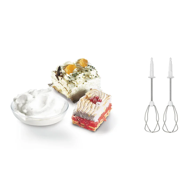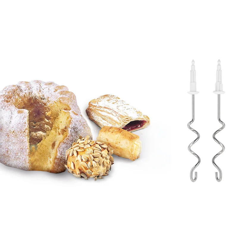 دو سری از جنس استیل ضد زنگ همراه با دستگاه ارائه شده که از سری همزن برای تهیه کیک ، یک دست نمودن سس و تخم مرغ و از سری خمیر زن برای ورز دادن خمیر استفاده میشود.