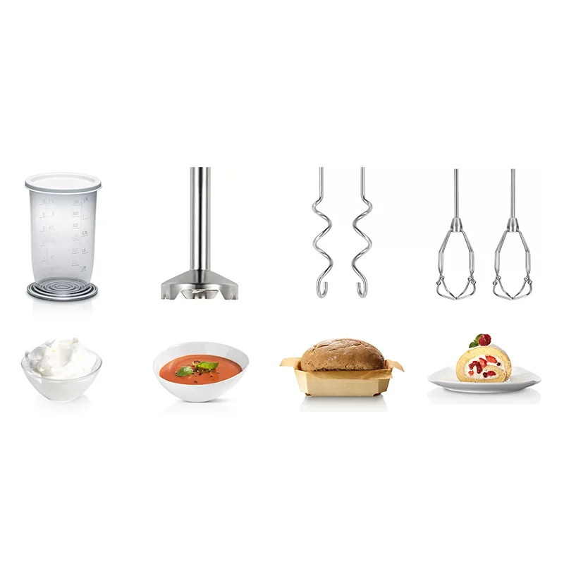 با وجود میلههای همزن موسوم به FineCreamer از جنس استیل ضدزنگ قادرید به ایدههای آشپزی خود حجم بیشتری دهید و در کمترین زمان ممکن اقدام به تهیه دسرهای پفدار کنید. وجود توپهای کوچک تعبیه شده در مکانیزم ساخت این میلهها موجب ایجاد هوای خالی داخل خمیر شده، بنابراین ترکیب داری حجم و پف بیشتری خواهد شد. وجود دو قلاب استیل ضدزنگ بهمنظور سهولت در ورز دادن خمیر نان و پیتزا و ترکیبات چالشبرانگیز بهعنوان دیگر ابزار جانبی در این دستگاه تعبیه شده است.