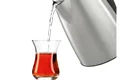 چای ساز بوش مدل TTA5883 با قدرت 1800 وات دارای طراحی یکپارچه استیل می باشد که یکی از زیباترین مدل های موجود در بازار است. این چای ساز برقی دارای کتری به حجم 1.7 لیتر از جنس استیل ضد زنگ و قوری با حجم 0.7 لیتر می باشد که با جنسی یکسان با کتری طراحی فوق العاده زیبایی را ایجاد کرده است و می توان گفت قیمت چای ساز برقی بوش به نسبت کیفیت آن بسیار مناسب است. پس از به جوش آمدن آب شما می توانید چای را دم کرده و بر روی کتری بگذارید، در این حالت دستگاه به حالت گرم نگه دارنده تغییر وضعیت پیدا خواهد کرد و با بخاری ملایم چای شروع به دم کشیدن خواهد کرد و شما می توانید با یک مدل مناسب از برندی معتبر یک چای را باکیفیت هر چه تمام تر برای خود در مدت زمانی کوتاه تهیه فرمایید، کتری این چای ساز بوش دارای یک درب جداگانه نیز می باشد که می توانید از آن به عنوان کتری استفاده کنید و از آن برای جوش آوردن آب و تهیه هر گونه دم نوش یا قهوه فوری و یا مصارف دیگر استفاده نمایید.