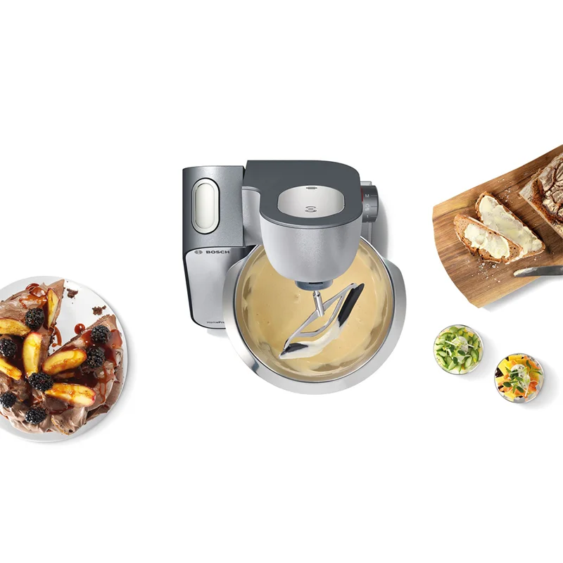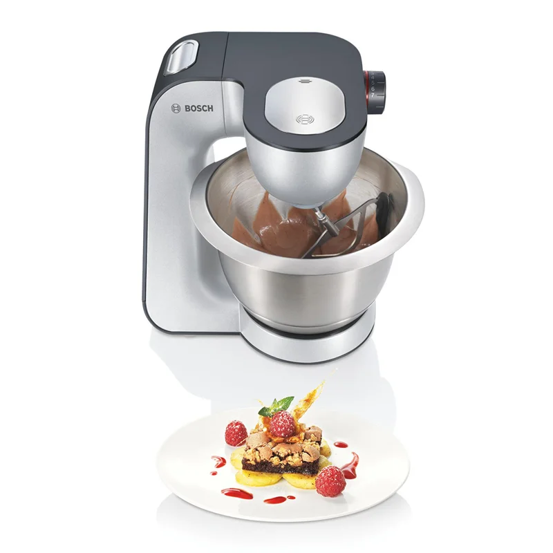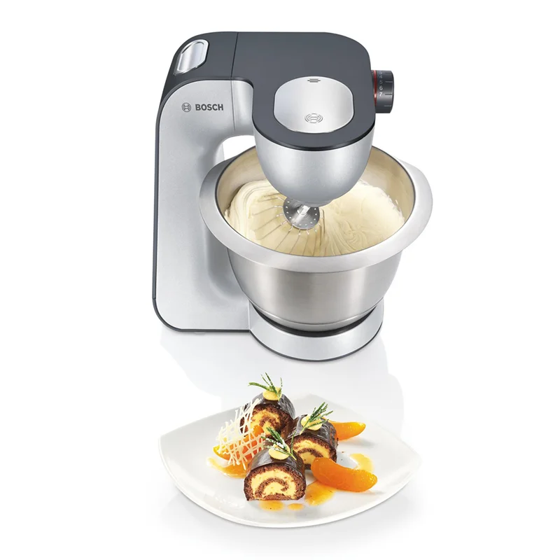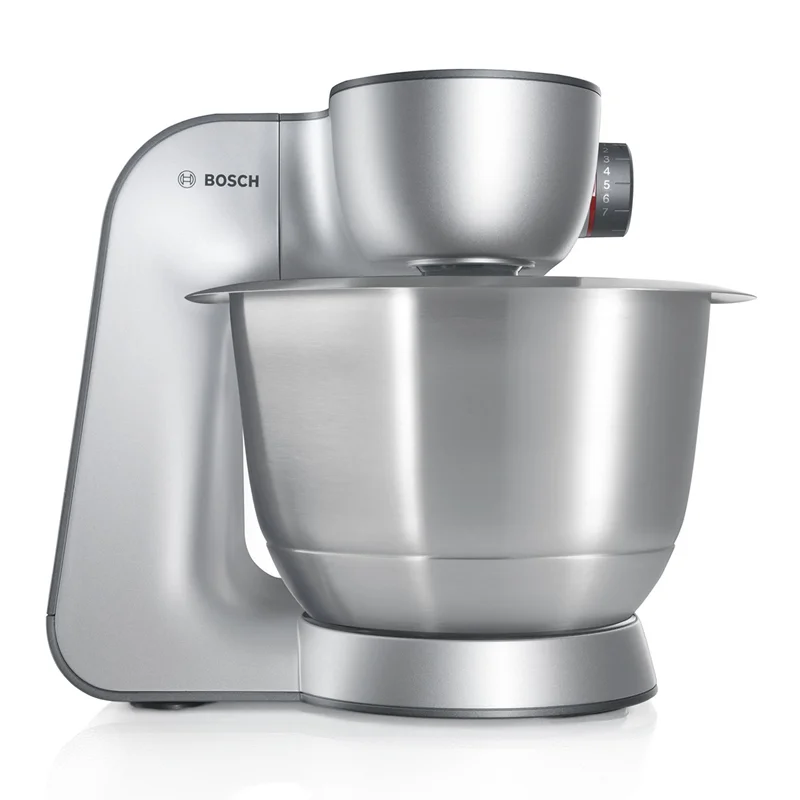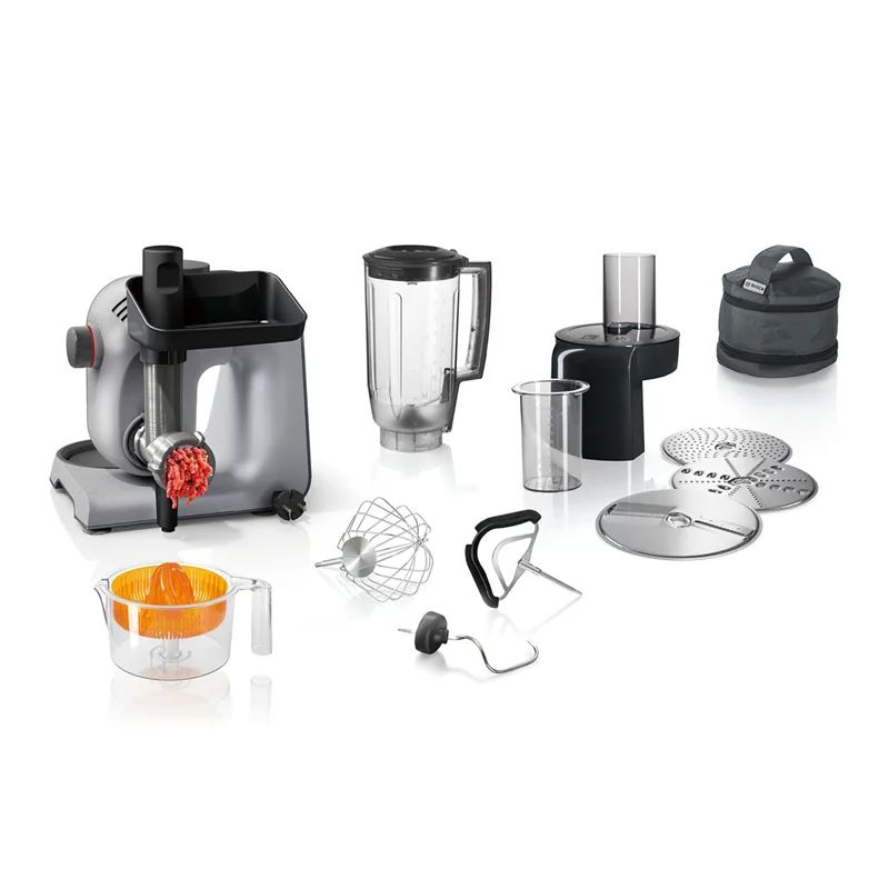 ماشین آشپزخانه بوش مدل BOSCH MUM5 MUM59340GB با موتور قدرتمند 1000 واتی و طراحی زیبا و به رنگ استیل خاکستری میباشد که اکثر نیازهای شما در حین آشپزی را رفع میکند.کاسه دستگاه با ظرفیت 3.9 لیتر و از جنس استیل ضدزنگ است. درب کاسه مجهز به محفظه ای برای اضافه نمودن انواع چاشنی در حین کار دستگاه میباشد. پارچ مخلوط کن 1.25 لیتر ظرفیت دارد و از آن جهت تهیه انوع نوشیدنی و اسموتی میتوان استفاده نمود.
