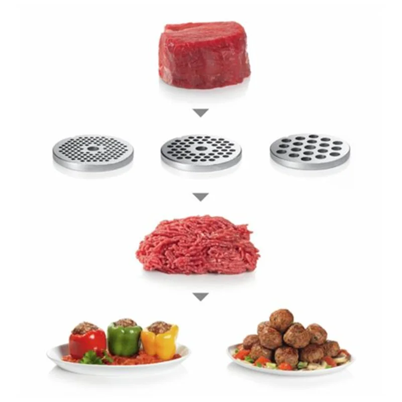 وجود قیفهای مخصوص تهیهی سوسیس هم میتواند امکانی کاربردی باشد تا تنوع غذایی افراد بالا برود.کبه چیزی شبیه سمبوسه است و یکی از غذاهای عربی مخصوصاً در حاشیه دریای مدیترانه است. معمولاَ با گوشت تهیه می شود. داخل گوشت را با برنج و دیگر ترکیبات پر می کنند. با استفاده از سَری کُبه ساز می توانید بسیار سریعتر از آنچه فکر میکنید برای اعضای خانواده یا مهمانان، کُبه تهیه کنید. چرخگوشت بوش مدل MFW68640 طول سیم برقی به میزان مناسب دارد تا چندان محدودیتی برای فاصله از پریز برق وجود نداشته باشد.چرخ گوشت 68640 بر روی پنل خود دارای کلید روشن و خاموش و عملکرد معکوس میباشد . عملکرد چرخش معکوس زمانی به کار میرود که دهانه دستگاه با گوشت یا استخوان مسدود شده باشد و با فشردن این کلید تمامی مواد برگشت داده میشود تا دوباره آن را چرخ نمود.
