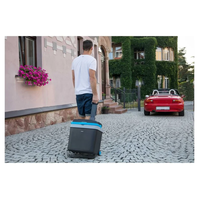 این یخچال بدنه ای پلاستیکی و کاملا عایق دارد که از خروج دمای داخل به محیط ممانعت می کند. وزن آن کاملا متناسب است تا حمل و حرکت آن به هر مکانی راحت باشد. رنگ مشکی آن قابل هماهنگی با دیزاین هر ماشین و محیط می باشد.توسط دستگیره ی کاربردی وتاشو می توانید یخچال را به هر مکانی که خواستید حمل نمایید. هم چنین دستگیره ی اضافی نیز برای آن طراحی شده است که می توانید با بیرون آوردن آن یخچال را به شکل چمدان تبدیل کنید و با تنظیم ارتفاع مناسب حرکت روان و آرام آن را به هر جا کنترل کنید.
