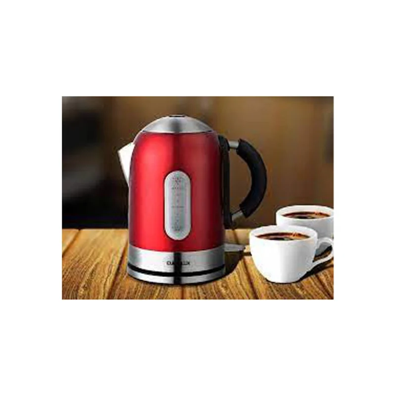 امروزه واقعاً دسترسی به آب جوش فوری یک نیاز ضروری در منزل و محیط کار بوده و کتری برقی بهترین وسیله برای رفع این نیاز است. بدون اینکه وقت، انرژی و فضای زیادی نیاز داشته باشد، میتواند در تهیه سریع انواع دمنوش و نوشیدنیهای گرم کمک کننده باشد. کتری برقی یورولوکس EU EK2854HSR یکی از لوازم آشپزخانه پرکاربرد که توسط شرکت معتبر یورولوکس تهیه و ارائه شده است این کتری بدنهای استیل ضد زنگ به رنگ قرمز دارد که با قطعات پلاستیکی ترکیب شده که با ظاهر ساده و شکیل، بهخوبی با تم هر آشپزخانهای هماهنگ میشود و جلوه ی زیبایی به آشپزخانه می بخشد. موتور این کتری برقی با توان 2200 وات به سرعت المنت گرمایشی دستگاه را داغ کرده و آب را در مدتی کوتاه به جوش میآورد این دستگاه گنجایش 1.8 لیتر آب را دارد و تقریبا 8 لیوان آبجوش را تهیه و از طریق نوار مدرج باریک و شفاف روی بدنه میتوانید حجم آب داخل محفظه را مشاهده کنید. استفاده از این کتری بسیار راحت بوده تمام کاری که شما باید انجام دهید این است که آب را درون ظرف بریزید و سپس دکمه روشن و خاموش را فشار دهید. این کتری به شما این اختیار را میدهد که آب داغ داخل مخزن کتری را در دمای مورد نظرتان، تا چند ساعت با همان کیفیت و دما نگهداری کنید.