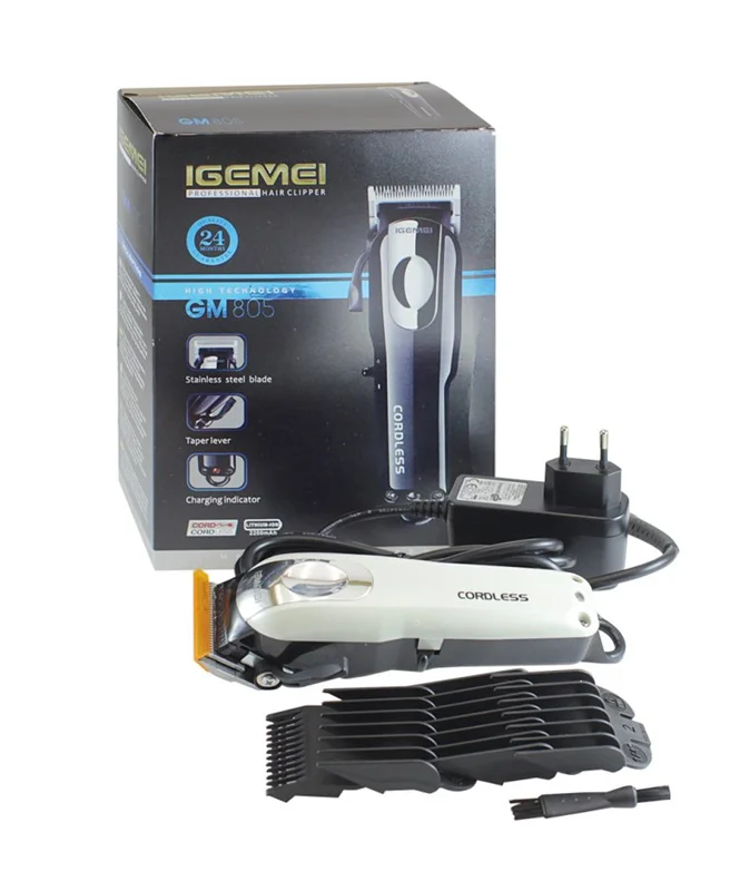 ماشین اصلاح حرفه ای جمی GM-805 یک ماشین اصلاح کامل و پرقدرت می باشد که می تواند هم در منزل و هم در سالن آرایشگاه ها مورد استفاده قرار گیرد. ماشین اصلاح جمی دارای 4 شانه با اندازه های مختلف می باشد تا بتواند اصلاحی کامل و بی نقص را بر طبق خواسته شما انجام دهد. همچنین در کنار این ماشین اصلاح جمی اهرمی جهت تنظیم تیغه نیز وجود دارد که با استفاده از آن می توان تغییرات مورد نظر را در اندازه برش اعمال نمود.