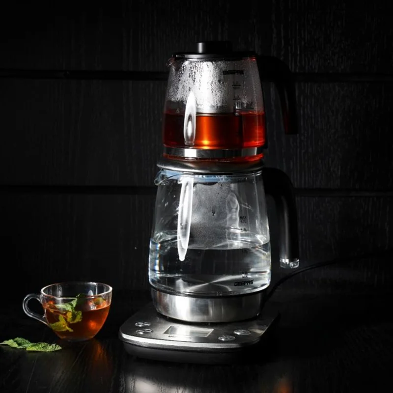 چای ساز جی پاس محصولی از برند فوما دارای کتری و قوری شیشه ای با طراحی زیبا می باشد و دارای حالت قرار گیری روی هم برای کاربر خود فراهم نموده است. همچنین می توانید به وسیله ی قرار دادن کتری روی قوری چای را به روش دم کردن به وسیله ی گرمای ملایم آماده کنید و چای خوش طعم و خوش عطری در پایان داشته باشید. ظرفیت قوری در چای ساز جی پاس GTM38046 مقدار ۱.۲ لیتر بوده و ظرفیت کتری ۱.۷ لیتر است. این محصول همچنین دارای ویژگی های خاموش شدن خودکار ، دارا بودن صفحه ی گرم نگه دارنده کتری ، قابلیت چرخش ۳۶۰ درجه و دارا بودن پنل لمسی ، تنظیمات دما و .. می باشد.