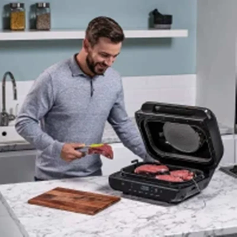 فناوری گریل سیکلونیک (Cyclonic): محفظه گریل 260 درجه سانتی گرادی فوق العاده داغ با گردش هوای سریع اطراف غذا کانوکشن یا فن ،نشانگر میزان پخت استیک در 5 سطح ، قابلیت تنظیم دما ، خاموش شدن خودکار ، تایمر ، اعلام هشدار در پایان برنامه ، پایه ضد لغزش ، محفظه برای جمع كردن سیم برق ، نشانگر روشن بودن دستگاه