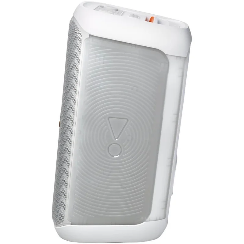اسپیکر بلوتوثی قابل حمل جی بی ال PartyBox Club 120، یک دستگیره روی آن برای جابهجایی تعبیه شده است. از نورپردازی متناسب با نوع آهنگ در این دستگاه غافل نشوید و اجازه دهید محیط تاریکتان با این نورها زیباتر شود. دقت کردهاید زمانی که در بعضی از اسپیکرها صدا بالا میرود کیفیت پایین میآید؟ این اسپیکر جیبیال اما بدون این اتفاق حتی در بالاترین میزان صدا هم باسی عمیق و صدایی شفاف به شما میدهد. در حین اجرای آهنگ، شارژ باتری اسپیکر تمام میشود؟ ناراحت نباشید سریعاً آن را به شارژ متصل کنید تا نهایتاً با ۱۰ دقیقه شارژ، ۸۰ دقیقه دیگر اسپیکر کار کند.