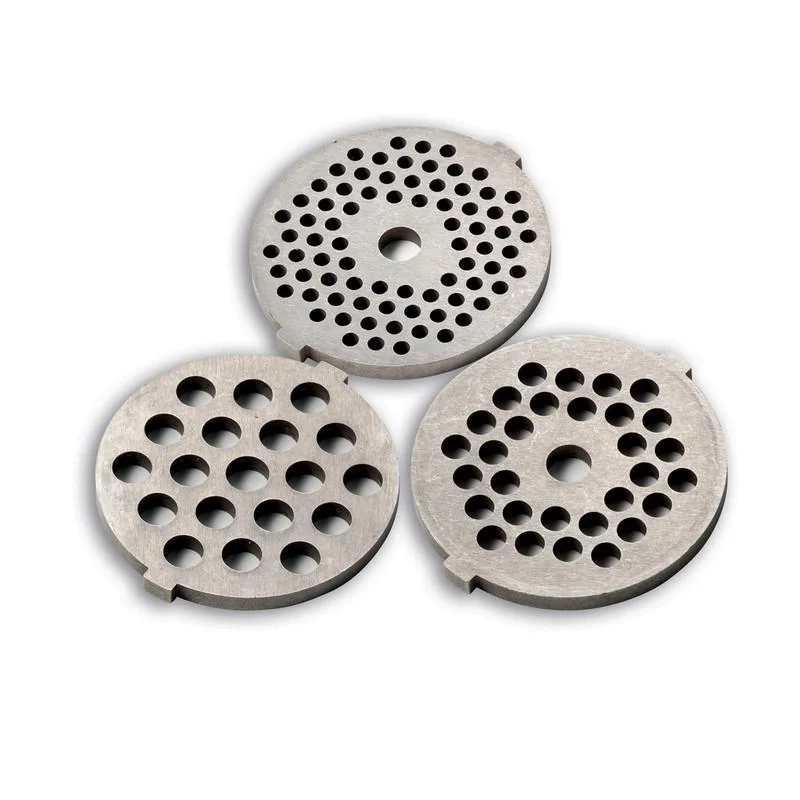 به همراه این چرخ گوشت سه نوع دیسک مختلف قرار دارد.جنس این صفحات از فولاد بوده و کاملا مقاوم و ضد زنگ هستند.هر کدام از این صفحات دارای روزنه هایی برای رشته کردن گوشت است و می توانید با استفاده از انها گوشت را در اندازه باریک،متوسط و درشت به صورت رشته ای در بیاورید.