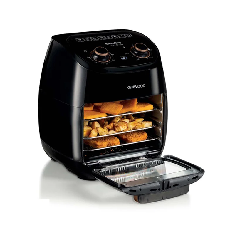 سرخ کن چندکاره کنوود مدل HFP90 یکی از جدیدترین محصولات این کمپانی است که یکی از جدیدترین و شاید از بهترین محصولات کنوود بشمار می رود.توان مصرفی این دستگاه 1700 وات است که توان مناسبی برای این دستگاه است.این دستگاه دارای قابلیت پخت بدون روغن است که این امکان را دارد یک سیب زمینی را تا 80 درصد چربی کمتر سرخ کند و هیچگونه تغییری در طعم و مزه آن ایجاد نمی شود.این دستگاه مثل نمونه های دیگر نیازی به گرم شدن ندارد ،فقط کافیست مثلا برای سرخ کردن سیب زمینی حدود 11 و 12 منتظر باشید تا کارش را تمام کند.در سرخ کن چندکاره کنوود مدل HFP90 به دلیل اینکه از هوای داغ به جای روغن برای سرخ کن استفاده می شود لازم است بدانید که اولا بوی بد غذاها را می گیرد و همچنین باعث می شود تا بخار روغن خیلی کمی ایجاد شود.این دستگاه کاربردهای دیگری نیز دارد از جمله می توان از آن به عنوان یک توستر کوچک نیز استفاده نمود.این مدل سرخ کن درب شیشه ای دارد که این امکان را به شما می دهد که هنگام پخت مواد غذایی،داخل آن را تماشا کنید،که این یک ویژگی منحصر بفرد بشمار می آید.