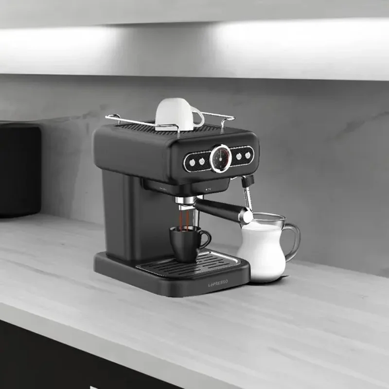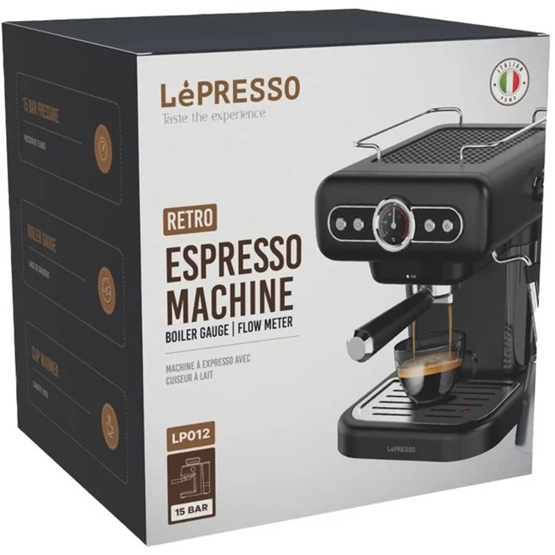 اسپرسو لپرسو مدل LPCFFM0012 با گیج و بخار شیر، اسپرسویی با کیفیت باریستا را برای علاقه مندان به قهوه در آسایش خانه فراهم می کند. این دستگاه دارای یک گیج دیگ است که سطوح فشار را برای اطمینان از دم کردن بهینه و یک دکمه کنترل بخار برای ایجاد بافت های کف دار شیر کنترل می کند. یک بشقاب گرم کننده فنجان، فنجان ها را در دمای نوشیدنی ایده آل نگه می دارد. این دستگاه دارای یک سینی چکه قابل شستشو و یک پمپ قدرتمند 15 باری است که عکسهای غنی از مخزن آب 1.2 لیتری خود را ارائه میدهد.