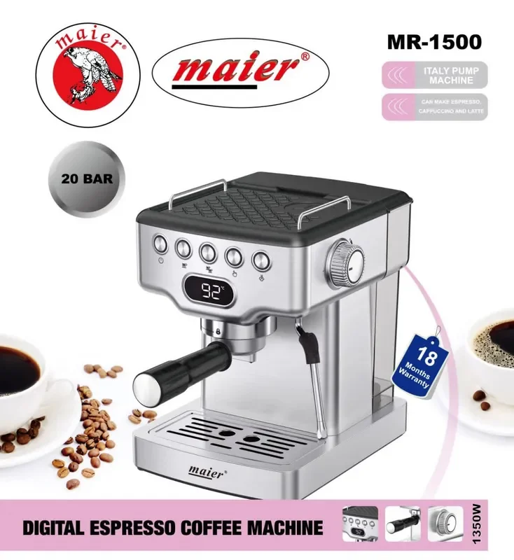 مصرف روزانه قهوه می تواند به شما در طول روز انرژی ببخشد و شما را سرحال نشان دهد. آماده سازی یک فنجان قهوه به روش سنتی کمی سخت و دشوار است و آماده سازی آن زمانبر است. سپس امروزه با داشتن قهوه ساز و اسپرسوساز هایی در خانه این مشکل حل شده و در کمترین زمان یک فنجان اسپرسو یا قهوه خوشمزه را برای شما درست می کند. یکی از اسپرسوساز هایی که می توان آن را برای خانه و محل کار انتخاب کرد، اسپرسوساز مایر مدل MR-1500 می باشد که با بهترین مواد و کارآمدترین ویژگی ها ساخته شده است.
