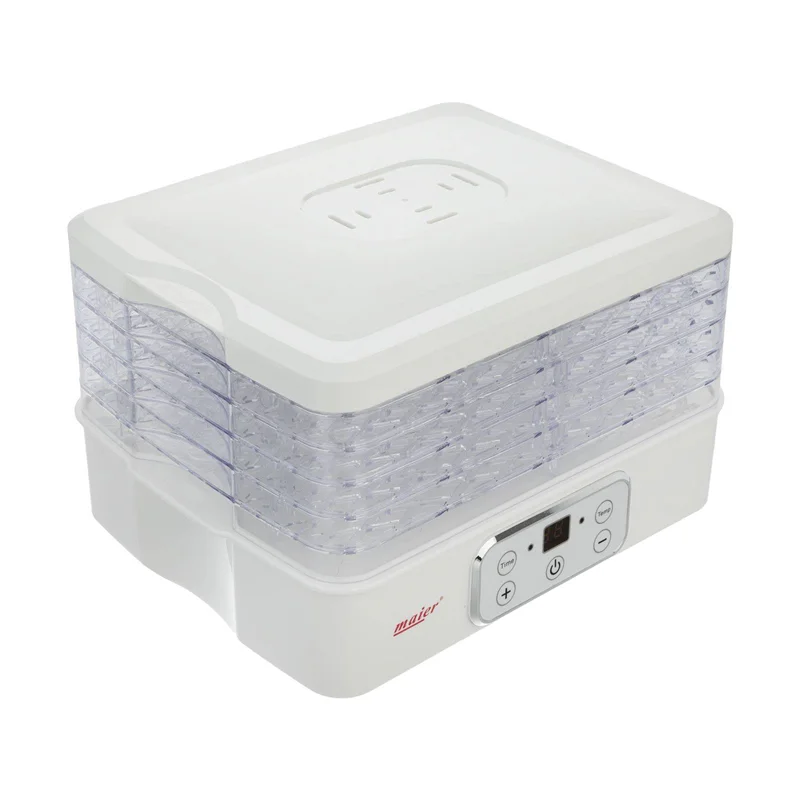 میوه و سبزی خشککن «مایر» مدل «MR-3939» دستگاهی بسیار موفق در زمینهی خشککردن اقلام خوراکی است. میوههای خشک سالهاست وارد بازار تنقلات شدهاند و طرفداران زیادی دارند. مخلوطکردن آنها با آجیل یا سرو انفرادی آنها در میهمانیها، کافیشاپها و رستورانها بهعنوان تنقلات، به امری عادی و قسمتی از توقعات میهمانان یا مشتریان تبدیل شده است. با استفاده از میوه و سبزی خشککن سایا مدل GP-102 تهیهی تنقلات سالم و طبیعی به شکل دلخواه ممکن میشود. این دستگاه دارای 5 سینی است که بهصورت مشبک از جنس پلاستیک ساخته شدهاند. جریان مداوم و یکنواخت هوای داغ کنترلشده از میان این شبکهها و از میان میوههای برشخورده، باعث خشکشدن یکنواخت آنها میشود. خشککردن سبزی هم به همین منوال است. بعد از شستوشو و پخش یکنواخت آنها در سینیها، میتوان به خشککردن آنها اقدام کرد. برش میوهها هر چه نازکتر باشد، (حداقل 5 میلیمتر) خشکشدن بهتر و سریعتر انجام میشود. قابلیت خشککردن این دستگاه تنها به میوه و سبزی ختم نمیشود و میتوان گلها را هم با آن خشک کرد و در تزیینات مختلف از آنها بهره برد. امکان تهیهی لواشک هم باید در قابلیتهای این دستگاه در نظر گرفته شود. لواشکی که بهداشتی، طبیعی و با طعم دلخواه توسط دستگاه MR-3939 تهیه میشود، بسیار وسوسهانگیز خواهد بود. طبقات دستگاه قابل کمشدن هم هستند تا در موارد خاص، فضای بیشتری از داخل دستگاه در اختیار باشد. دسترسی به تنقلات سالم با این دستگاه بهراحتی میسر خواهد بود.
