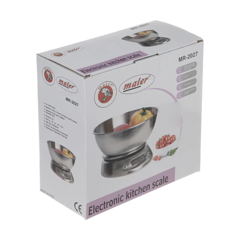 ترازو مایر مدل MR-2027 یکی ابزار کاربردی و لازم برای آشپزخانه است که می تواند در آماده سازی غذا و یا دسر ها و … با خطای اندازه گیری فقط 1 گرم به آشپزها کمک کند.کم و زیاد شدن مواد تشکیل دهنده غذا یکی از معذلات آشپزی است و نگرانی هایی را برای آشپز به همراه دارد. ترازو آشپزخانه مایر مدل MR-2027 به کمک آشپز آمده و این مشکل را حل کرده و همچنین باعث سرعت در انجام فرایند آشپزی شده است ترازو آشپزخانه MR-2027 به دلیل سادگی ساخت و همچنین دقت بالا و قیمت مناسب می تواند به راحتی در همه آشپزخانه ها وجود داشته باشد با تهیه ترازو آشپزخانه MR-2027 دیگر نیازی به پرداخت هزینه زیاد برای تهیه ترازو های گران قیمت نیست.این ترازو نیز به غیر از کاربرد در آشپزخانه قابلیت اندازه گیری گرم ، میلی لیتر ، انس و پوند را داراست که باعث می شود این ترازو در رسته ترازو های حرفه ایی قرار بگیرد. هم چنین صفحه نمایش این ترازو قابلیت نمایش " هشدار باتری ضعیف و وزن بیشتر از ظرفیت " را نیز دارا است