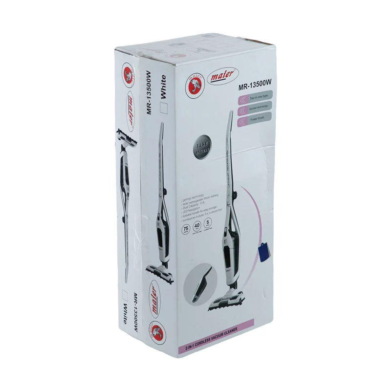 اگر خانه یا آپارتمان پیچیده دارید با مبلمان و قفسه های کتاب و میزهای کار گوشه کنار تخت خواب که دسترسی به ان سخت است ، پس جارو شارژی مایر Maier MR-13500 برای شما ایده آل است. جارو شارژی مایر مدل MR-13500 شعاع عملیاتی بدون محدودیتی به شما ارائه می دهد که فضای کافی است تا در هر زمان مجبور به جستجوی پریز برق دیگری نباشید. همچنین کنترل جارو شارژی با یک سوئیچ کشویی ارگونومیک که به خوبی قابل مشاهده و کار با آن باشد ، شما را به راحتی متعجب خواهد کرد. جاروشارژی میله ای باریک است و دارای مرکز ثقل کمی است ، تمیز کردن با آن به معنای واقعی کلمه یک لذت است.