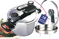 یک نهار خانوادگی و یک ابگوشت خوشمزە لازم نیست روز را توی اشپزخانە بگذرانید تهیە یک غذا با کمترین وقت ممکن ,دیگر سرپا ایستادن جلو اجاق گاز را بە فراموشی بسپارید زودپز روگازی مایر برای شما بهترین خوراک ها را تهیە میکند عاشق یک غذای متفاوت هستید بە شما پیشنهاد میکنم زودپز مایر را خریداری کنید,فقط کافی است تا مواد غذایی را در داخل دستگاه زودپز ریخته بدون اتلاف وقت و به کارهای دیگر برسید .به ساعت نگاه کردن و منتظر پخت غدا شدن خبری نیست کار را به این محصول مایر بسپارید .مصرف انرژی را تا میزان بسیار زیادی کاهش داده این عالی نیست ؟همان طعم و مزه غذا به سبک سنتی را برای شما تدارک می بیند.شیوه و روش کار دستگاه زودپز به این صورت است با بکارگیری فشار بخار جریان هوای گرم و حرارت فشرده به مخزن پخت غداها با رطوبتی طبیعی و لذتی وصف ناپذیر اماده خواهند شد از دیگر قابلیت ها زود پز رو گازی مایر این است که بە حفظ ویتامین ها و مواد معدنی عطر و طعم غدا کمک میکند.بر روی درب زودپز یک ولوم تنظیم فشار بخار دستگاه تعبیه شده است که شما با توجه به غذای مورد نظر و دلخواه خود ان را تنظیم کنید درب ان از نوع قفل ایمنی بوده و به وسیله یک سوئیچ باز و بسته میشود ,یک اخر هفتە خوب و صمیمانه با میهمانان و یا خانواده ظرفیت زودپز 9 لیتر است بسته به میزان استفاده خود با ان غذا پخت نمایید غذاهای گوشتی ,پلوها, حبوبات و هر چز دیگر که مد نظرتان بود به همراه دستگاه سبد بخارپز نیز ارائە شدە است کە متوانید برا بخار پز کردن موادغذایی استفادە کنید .ویژگی نچسب بودن دیگ زودپز روگازی باعث راحتی در شستشوی دستگاه و وسیله ی همیشگی برای پخت تبدیل میکند. زودپز درب شیشه به همراه دارد شما میتوانید به عنوان قابلمه نیز از ان استفاده کنید.جنس دیگ از استیل مقاوم در برابر زنگ زدگی و ضدضربه است .