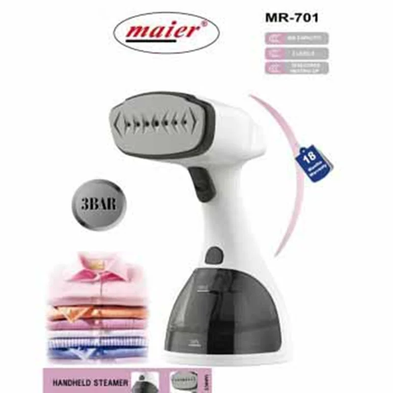اتو بخار دستی مایر مدل mr-701 ، یکی از سری اتو بخار های دستی مارک مایر آلمان است.انواع مختلفی از اتو در بازار وجود دارد که برای مصارف خانگی می توان اتوهای زیر را برشمرد:اتو بخار ایستاده ، اتو پرس ، اتو بخار مخزن دار ، اتو مسافرتی ، اتو بخار معمولی و اتو بخار پایه داردر اتوها توان حرارتی ، قدرت بخار ، جنس کف اتو از ویژگی های اصلی بشمار می رود.از دیگر ویژگی های با اهمیت اتو بخار معمولی می توان به ظرفیت مخزن آب ،قابلیت اتوکشی بصورت عمودی و امکاناتی همچون ضد رسوب و یا ضدچکه بودن است.در دسته دیگری از اتو ها که به بخارگر ایستاده ، یا اتو ایستاده معروف هستند.یکی نوع دیگر از اتو ها که به اتو دستی یا بخارگر دستی معروف هستند.بخار گر های دستی که در دست نگاه داشته می شوند.مکانیزم آنها به این صورت است که با استفاده از بالا به پایین کشیدن سری بخارگر با پرتاب بخار بر روی پارچه ، لباس و … عمل می کند.و به راحتی می توانید انواع چین و چروک لباس را بدون نیاز به میز اتو انجام دهید.اتو بخار دستی 701 مایر ، از محصولات شرکت مایر بوده و در کشور چین تولید شده است.