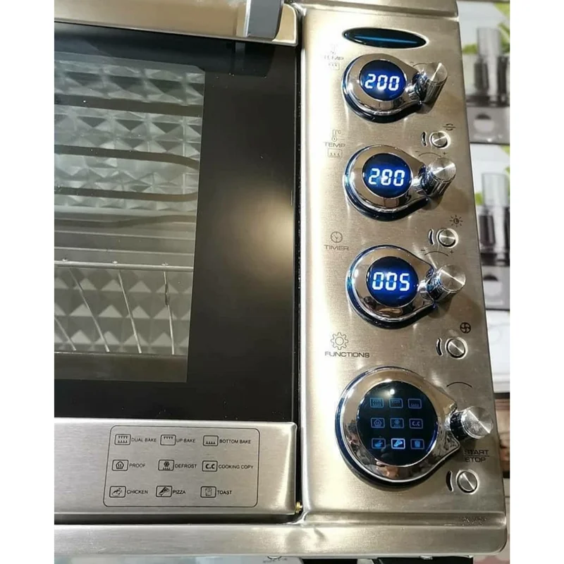 فن توستر MR-7700 هوای گرم را در دستگاه به گردش در می آورد تا غذا سریع تر و یکنواخت تر پخته شود.با توجه به حجم نوع مواد غذای می توانید دما مطلوب پخت را تنظیم کنید.این دستگاه مجهز به محفظه پخت 50 لیتر همراه با جوجه گردان است.همچنین می توان انواع مواد غذایی مانند گوشت،ماهی را بر روی سینی مخصوص گریل قرار داد تا کباب شوند. از این دستگاه برای پخت انواع پیتزا و ساندویچ میتوان استفاده کرد.تنظیم حرارت و زمان بصورت نیمه دیجیتال می باشد و جنس بدنه از تمام استیل و شیشه دوجداره است.