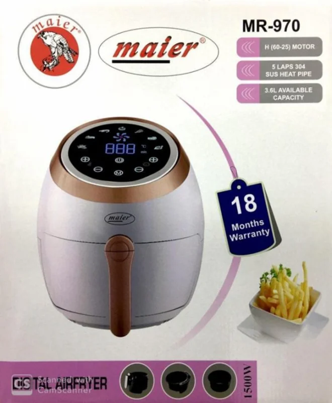 سرخ کن مایر مدل mr-970 و از سری جدیدترین مدل سرخ کن های شرکت مایر است .که زیبایی و کارایی را با هم دارد.ظرفیت این مخزن به حدی است که بهراحتی میتوان یک وعدهی غذایی خانوادهای کمجمعیت را در آن تهیه کرد.توان بالای سرخ کن مایر mr-970 و تکنولوژی بهکار رفته در آن امکان تهیهی غذای سالم و تقریبا بدون روغن را فراهم میآوردتا طعم واقعی مواد غذایی حفظ شده و روغن اضافه وارد آن نشود.مایر یکی ازکمپانی های شناخته شده در تولید انواع لوازم خانگی می باشدو از لحاظ کیفیت و هنر طراحی توانسته در کنار سایر رقبای قدر خود محبوبیت و بازار فروش خوبی را برای خود بوجود اورد.و دارای ویژگی های خوب و قیمت مناسب و کارایی فوق العاده ای میباشد.این سرخ کن محصول شرکت مایر آلمان ساخته شده در کشور چین است.