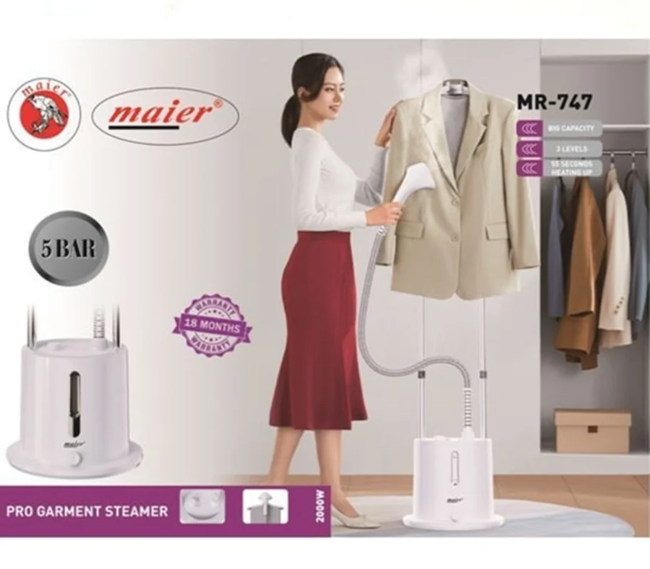 بخارگر ایستاده مایر مدل MR-747 دارای توان ۲۰۰۰ واتی و فشار بخار ۵ بار است که با توجه به توانی که دارد، قدرت و عملکرد دستگاه نیز بالا میباشد.اتو بخار ایستاده مایر دارای میز اتو با قبلیت افقی شدن برای راحتی اتو کردن، می باشد.جنس کفی این اتو سرامیک می باشد که هرگز دچار خط و خش و خرابی نمی شود.این اتو دارای مخزن ۱.۷ لیتری هست که برای استفاده در مزون ها و بوتیک ها و خانه مناسب می باشد.