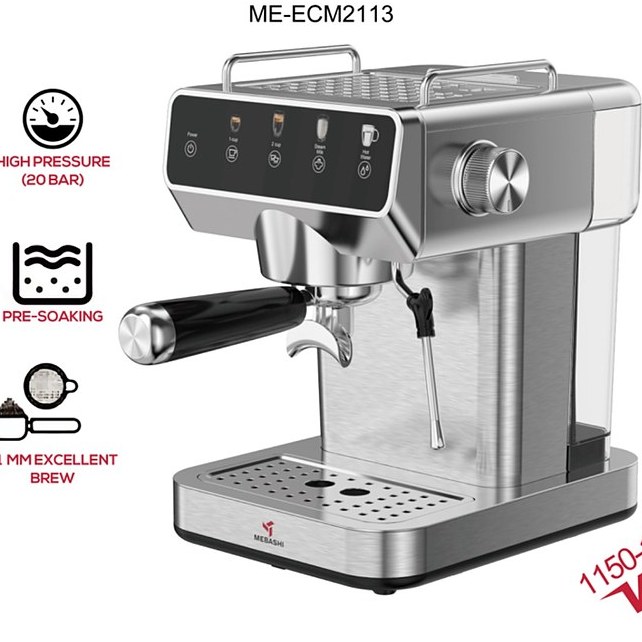 اسپرسوساز مباشی ME‑ECM 2113 یک دستگاه نیمهصنعتی توانمند است که برای کاربری خانگی، دفاتر کوچک یا کافیشاپهای خانگی طراحی شده است. این مدل با ترکیب امکانات حرفهای و طراحی مدرن، امکان تجربهای نزدیک به کافیشاپ را در خانه برای علاقهمندان به قهوه فراهم میکند. با توان حدود ۱۳۶۰ وات و فشار پمپ ۲۰ بار، این دستگاه قادر است عصارهای غنی و کرمایی از پودر قهوه استخراج کند. کنترل دستگاه با پنل لمسی باعث سهولت در استفاده و تنظیم دقیقتر عملکرد میشود.