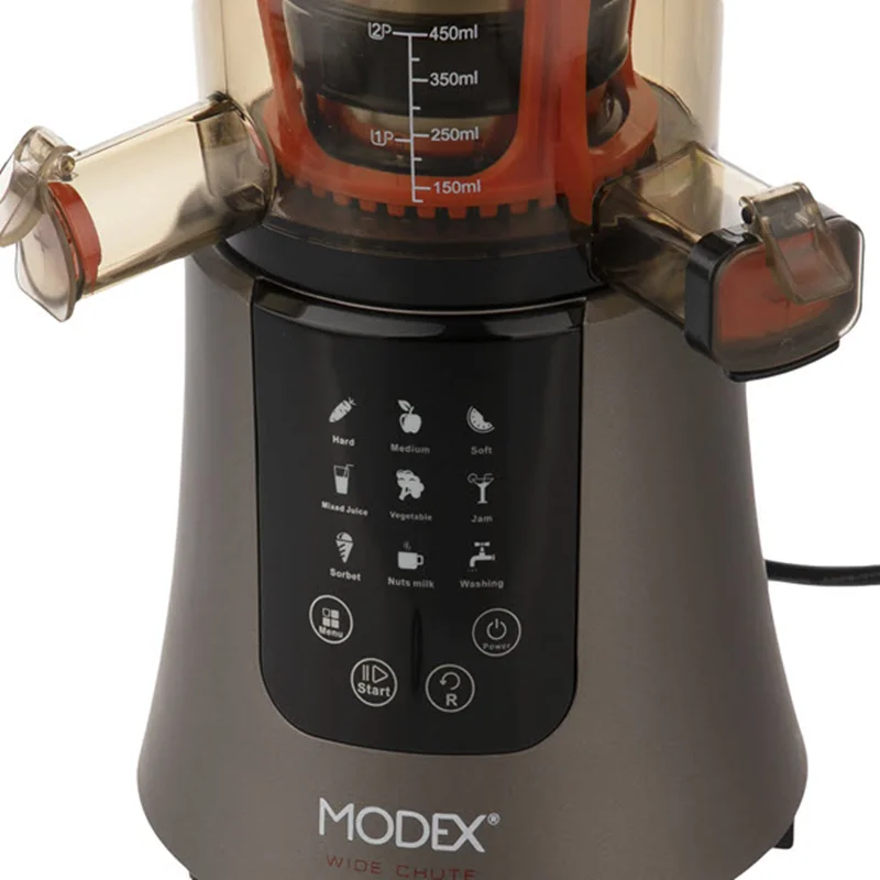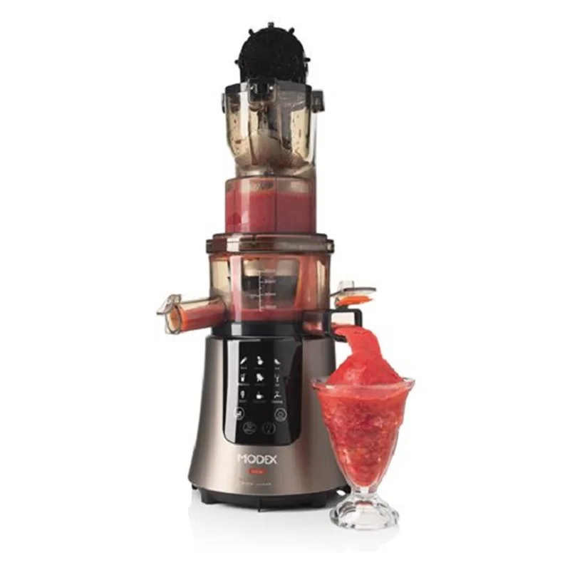 عصارهگیر مودکس مدل SJ595 دارای ظاهر بسیار زیبا و جذاب با امکانات و قابلیت های متعددی می باشد . یکی از ویژگی های اصلی این آبمیوه گیر فوق العاده عملکرد آن به عنوان عصاره گیر است .در فرایند عصاره گیری به جای استفاده از تیغه از عملکرد فشاری برای آبمیوه گیری استفاده می شود . اگر چه سرعت فرایند عصاره گیری بسیار کمتر است اما آبمیوه ای که طی این فرایند تهیه می شود بسیار سالم تر بوده و سرشار از مواد مغذی می باشد .
