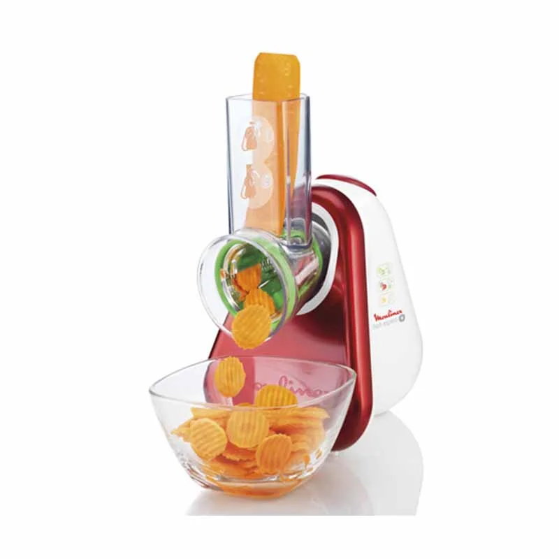 این دستگاه در ابعاد کوچکی طراحیشده و کابل آن نیز در قسمت پشتی دستگاه بهراحتی جمع میشود. رندهها همیشه جزو ابزارهای پرکاربرد در تهیه انواع غذا و سالادهای گوناگون به شمار میآیند و طی سالهای اخیر همانند دیگر لوازم آشپزخانه، نمونه برقی این ابزار کاربردی آشپزی نیز به جمع لوازم برقی آشپزخانه پیوسته است. لازم به ذکر است سازنده این دستگاه شرکت مولینکس (Moulinex) یک شرکت بزرگ فرانسوی است که از سال 1937 میلادی آغاز به کار کرده است. این شرکت در زمینههای مختلفی ازجمله ساخت لوازم برقی خانگی، فعالیتهای گستردهای انجام میدهد.