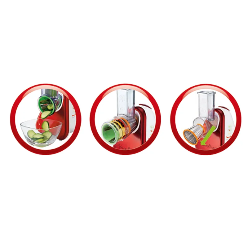 رنده برقی مولينکس مدل DJ755G32 از دیگر محصولات شرکت مولینکس (Moulinex) است که از طراحی زیبا و کارایی بالایی برخوردار است. کاربری این دستگاه فوقالعاده ساده بوده و کافی است با توجه به مواد غذایی موردنظر تیغه یا رنده مربوطه را در دستگاه قرار دهید. به همراه این دستگاه کوچک رنده و برشزنهای متعددی عرضه شده که مصرفکنندگان را در تهیه سالاد و آمادهسازی وعده غذاهای گیاهی و سالم یاری میکند. فعالیت رنده برقی مولینکس مدل DJ755G32 بهراحتی از طریق دکمه روی دستگاه آغاز می شود.