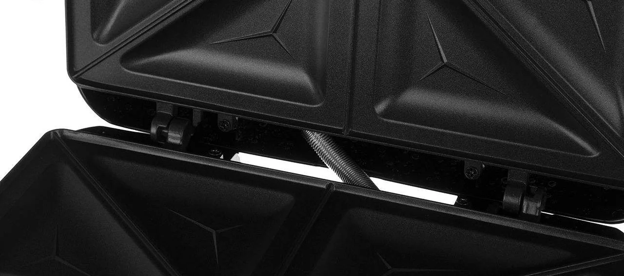 همچنین بر روی دستگیره های این دستگاه چفت ایمنی برای نگه داری درب تعبیه شده که از باز شدن درب جلوگیری میکند که علاوه بر ایجاد امنیت ، امکان پخت یکدست ساندویچ را فراهم کند. در زیر ساندویچ ساز پایههای ضد لغزش قرار داده شده است از حرکت کردن این دستگاه روی سطوح لغزنده جلوگیری میکند و باعث تسهیل در آشپزی بانوان و آقایان محترم میشود.جهت ست کردن ساندویچ ساز با وسایل آشپزخانه این دستگاه در دو رنگ مشکی و سفید به بازار عرضه شده است.