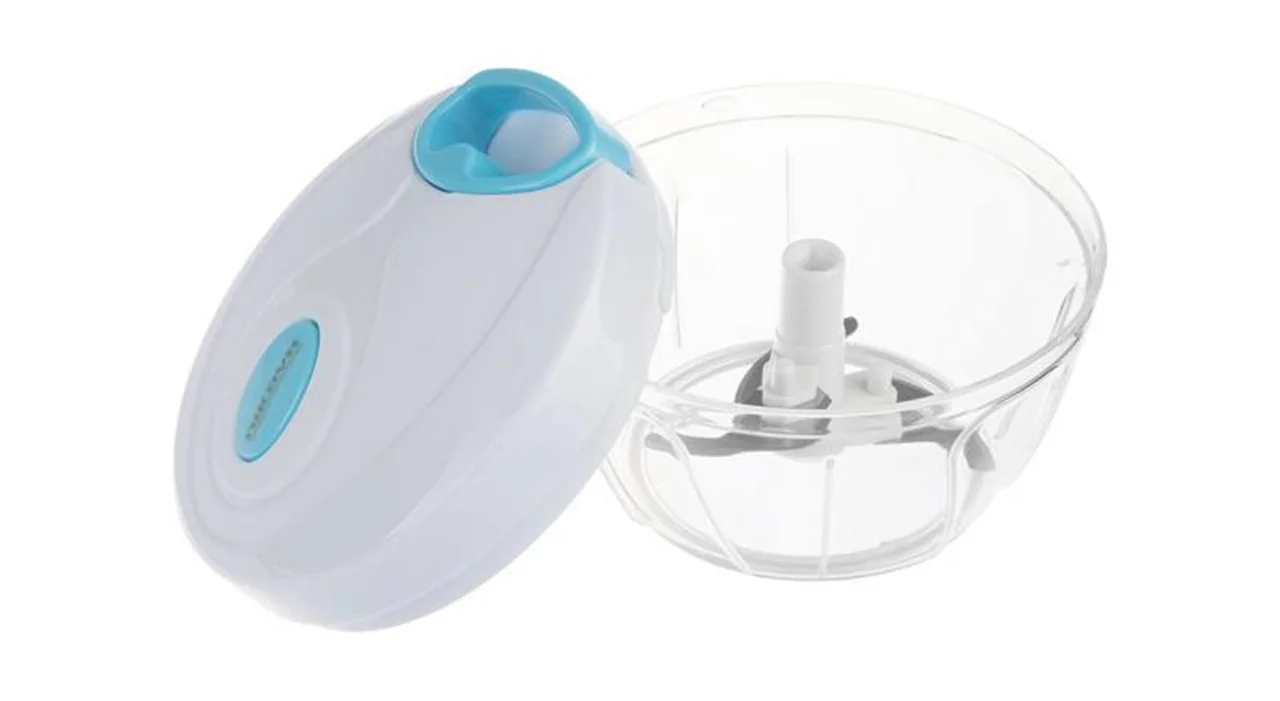 بیشتر اوقات برای خرد کردن سریع سبزیجات و میوه ها دچار مشکل میشویم و دنبال وسیله ای میگردیم که سبک و کوچک و براحتی تمام این کارها را برای ما انجام دهد.پیشنهاد ما به شما خرد کن دستی نیکووا مدل NMC-83 است. چیزی که این دستگاه را از دیگر محصولات متمایز میکند، مکانیزم چرخش آن است. به این صورت که روی درِ خردکن یک دستهی پلاستیکی وجود دارد که به یک ریسمان بسیار محکم متصل است. با کشیدن این دسته که داخل عکس میبینید تیغه آن به چرخش درمیآید و بسته به سرعت کشیدن ریسمان دارد که سرعت چرخش را کم و زیاد می کند. امکان پارهشدن آن به هیچ وجه وجود ندارد و حتی اگر روی بدنه ساییده شود، باعث خوردهشدن بدنهی پلاستیکی آن نمیشود.