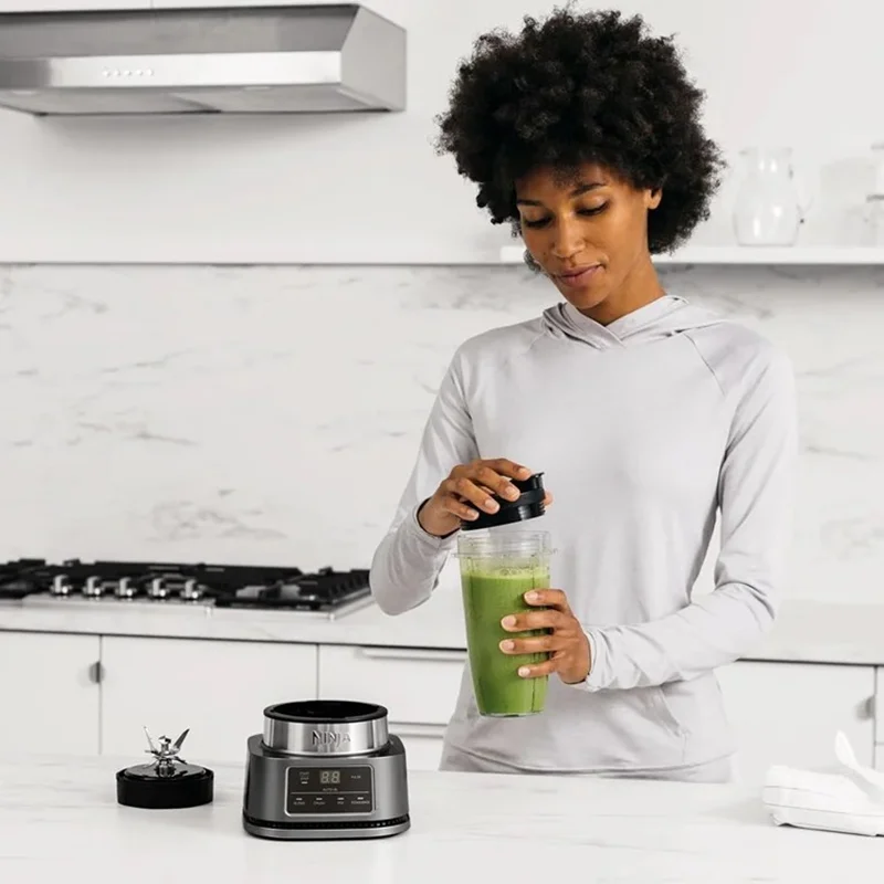 - تیغههای هیبریدی: مخلوط کن نینجا CB102ME از تیغههای استیل ضد زنگ “Hybrid Edge” استفاده میکند که توانایی بالایی در خرد کردن و پودر کردن انواع مواد را دارد.