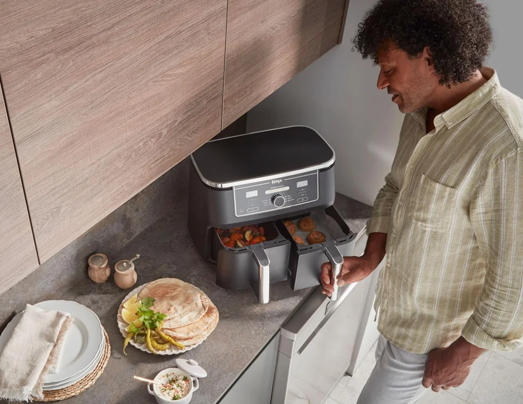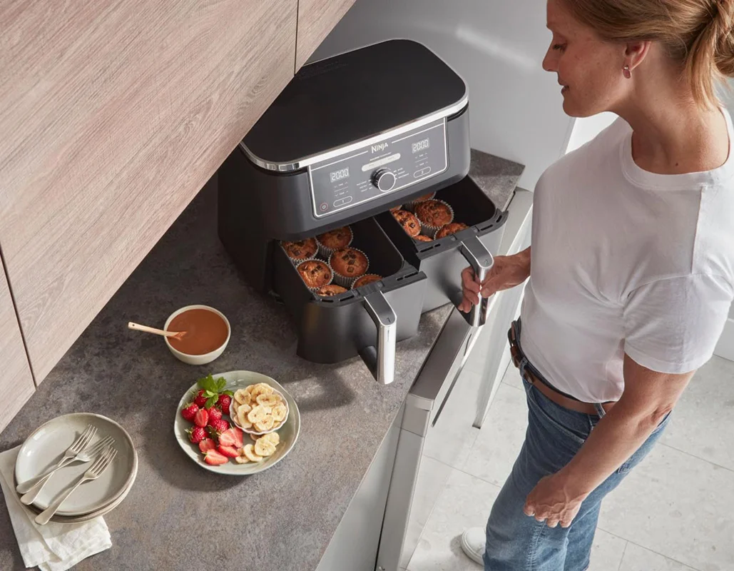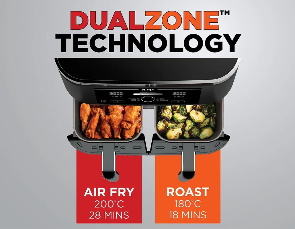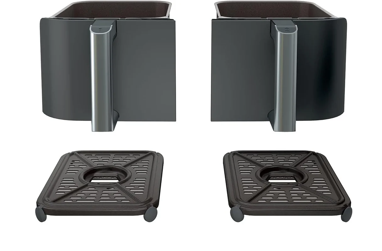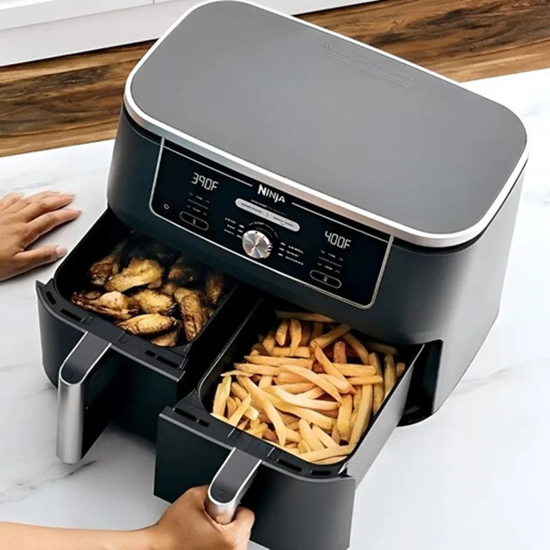 سرخ کن نینجا (NINJA) مدل AF400 یک سرخ کن دو قلو است. این دستگاه دارای دو مخزن و دو سبد پخت مجزا از یکدیگر است و این امکان را برای شما فراهم می کند تا شما مواد غذایی مختلف با زمان پختهای مختلف را به صورت هم زمان داخل دستگاه بگذارید.