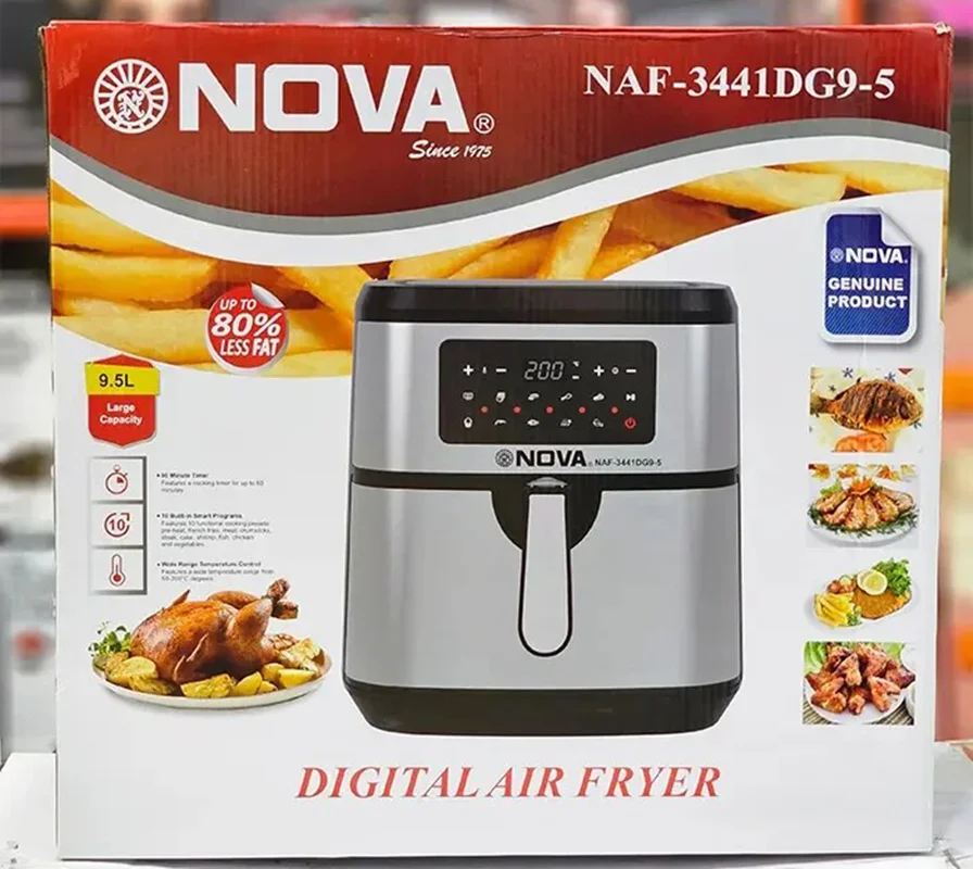 9.5 لیتر ظرفیت – با 9.5 لیتر ظرفیت به راحتی یک خانواده 10 تا 12 نفره را تغذیه می کند و یک سبد پخت و پز نچسب و سینی برای تمیز کردن ساده دارد. سبد و سینی آشپزی با روکش نچسب برای تمیز کردن آسان در ماشین ظرفشویی قابل شستشو هستند. با طراحی کم مصرف NOVA مصرف برق خود را تا 55 درصد کاهش دهید که هزینه انرژی شما را کاهش می دهد.