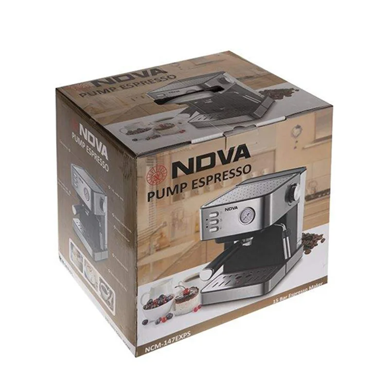 اسپرسوساز نوا مدل NCM-147 exps مجهز به صفحه ی گرم نگهداره ی فنجان است که به شما کمک میکند تعداد بیشتری فنجان قهوه را پیش گرم کنید و از نوشیدن یک فنجان اسپرسو خوب لذت ببرید.در این دستگاه از بویلر و پمپ آب قویتری استفاده شده است که بر روی درجه حرارت قهوه خروجی و همچنین بخار آب تاثیر گذار است. اسپرسوساز نوا مدل NoVA NCM-147EXPS مناسب مصارف خانگی یا کافه های کوچک است است .