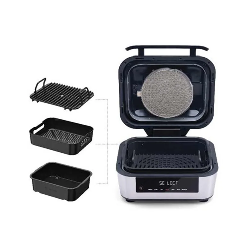 عملاً بدون دود محافظ پاشش قابل جابجایی از عنصر گرمایش در برابر چربی و بقایای مواد غذایی محافظت می کند و دود یا آشفتگی ناخواسته را کاهش می دهد.تمیز کردن آسان لوازم جانبی با روکش نچسب سرامیکی قابل شستشو در ماشین ظرفشویی هستند و به راحتی تمیز می شوند. برس تمیزکننده موجود، بقایای مواد غذایی خشک شده و بقایای مواد غذایی را از صفحه گریل پاک می کند، در حالی که قسمت زیرین هود نیز با پوشش نچسب سرامیکی پوشانده شده است که تمیز کردن سریع و آسان را انجام می دهد.