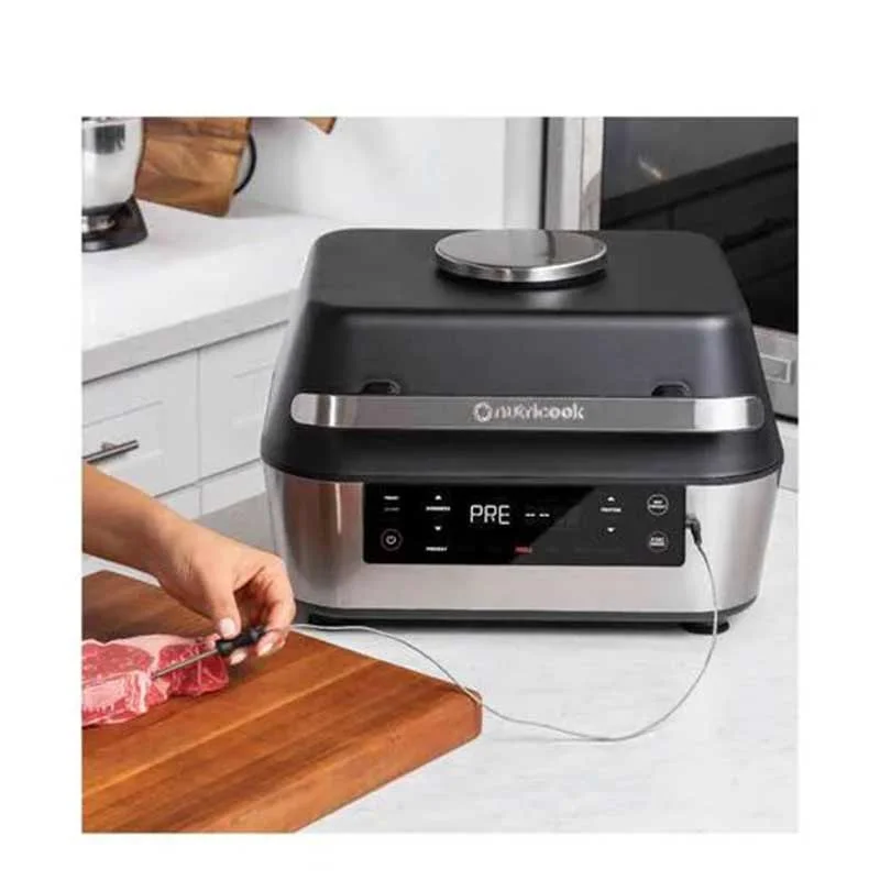 کباب پز کانتر داخلی هوشمند NUTRICOOK SMART Indoor Countertop Grill و سرخ کن هوا با ظرفیت فوق العاده بزرگ 8.5 لیتر، دارای سیستم پخت کامل و دارای دماسنج هوشمند است. گریل و سرخ کن هوشمند داخلی نوتریکوک دارای سیستم آشپزی کامل و دماسنج هوشمند از بین 5 تنظیم پروتئین گوشت گاو، بره، مرغ، ماهی، گوشت وگان با 5 درجه پخت از کمیاب تا خوب انتخاب کنید. دماسنج هوشمند گنجانده شده به طور مداوم دمای داخلی غذا را کنترل می کند و هر بار حدس و گمان را از بین می برد تا نتایج عالی بدست آید.
