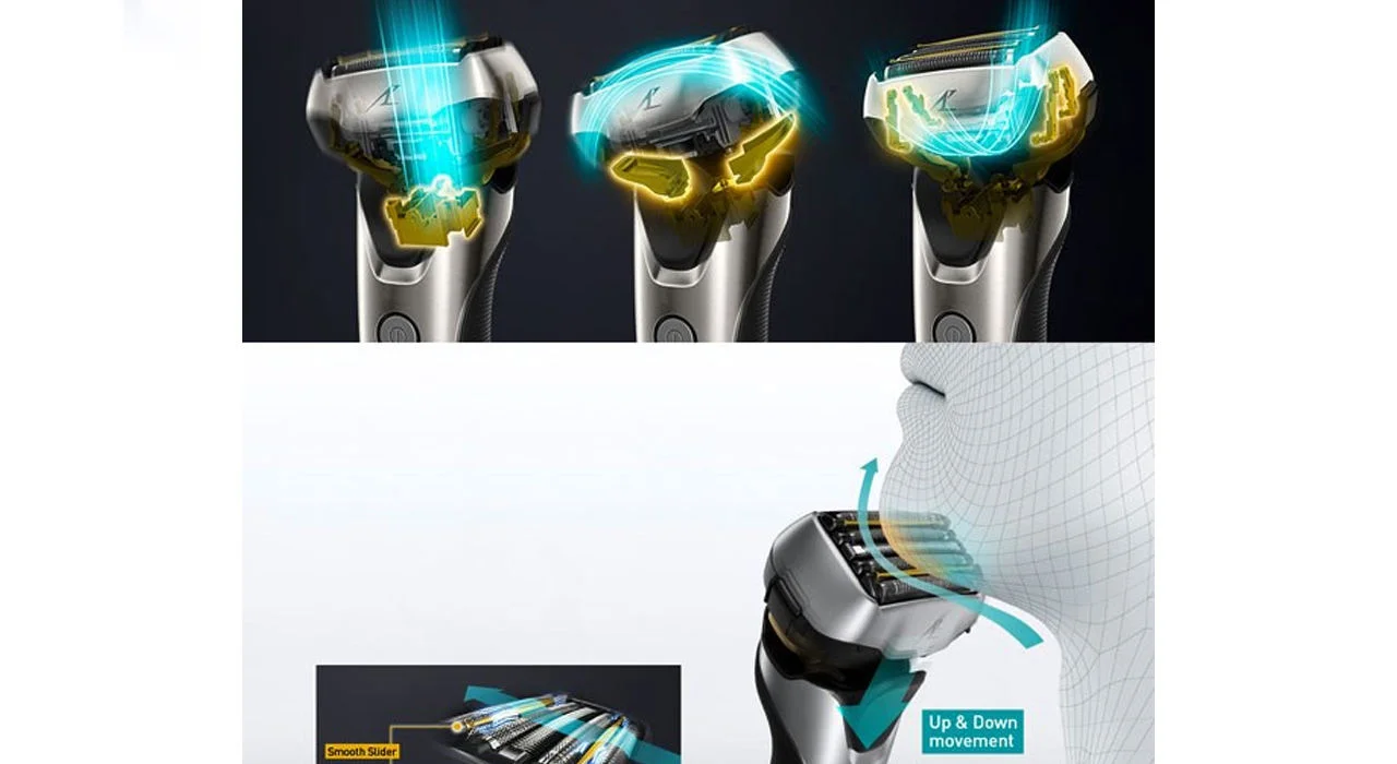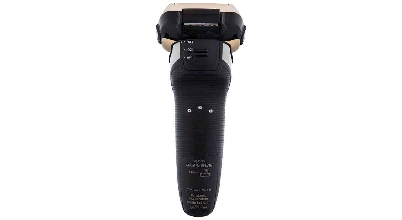 ماشین اصلاح «پاناسونیک» (Panasonic) مدل «ES-LV9N-S» ریشتراشی پنجتیغه و ضدآب با پایهی تمیزکنندهی اتوماتیک است. این مدل جزو سری ARC این شرکت به شمار میرود که تیغههایی منحصربهفرد دارند. این تیغهها دارای لبهای با زاویهی بهینهی 30 درجه هستند و موها را از نزدیکترین نقطهی ممکن به پوست قطع میکنند؛ علاوهبراین، تیغهها توسط فناوری نانو پولیش شدهاند تا نهایت دقت و تیزبودن را ارائه دهند و به مدت طولانیتری، برندگی خود را حفظ کنند. روی تیغهها توسط پنج پوشش از جنس استیل ضدزنگ پوشانده شده است که هر کدام طراحی مخصوص به خود را دارند. چهار عدد از پوششها از نوع فویلی هستند و با طراحی ششضلعی و لبههای با زاویهی خاص، همهی موها حتی موهای خوابیدهی زیر گردن را بلند کرده و سپس به کمک تیغههای زیری قطع میکنند.