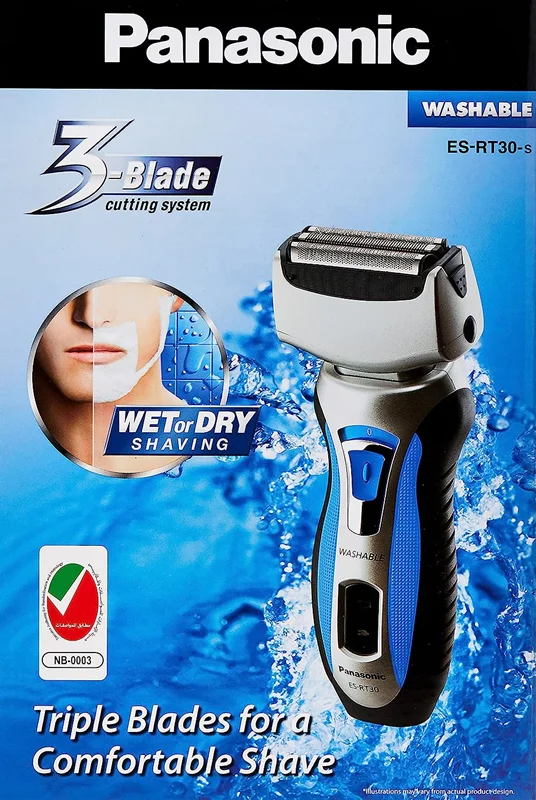ماشین اصلاح Panasonic ES-RT30 صد در صد ضد آب و قابل شستشو است که می توان آن را با تیغه های استیل ضد زنگش زیر شیر آب بشویید و همچنین علاوه بر اصلاح خشک، اصلاح با ژل و کف زیر دوش حمام را تجربه کنید .این ماشین ریش تراش به دو شیوه هم بی سیم و هم برق مستقیم کار می کند.
