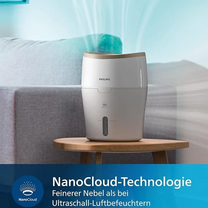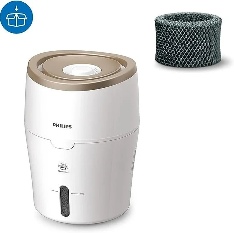 فرآیند تبخیر تصویه هوا فیلیپس مدل HU4811 بهداشتی و طبیعی برای اطمینان از عملکرد بهینه. هوای خشک از دستگاه مرطوب کننده عبور می کند. بخار آب اضافه می شود و هوای مرطوب بیشتری از دستگاه مرطوب کننده به هوای اطراف خارج می شود. فناوری NanoCloud از چنین فرآیند تبخیر طبیعی استفاده میکند که هوای خشک را به داخل میکشد، مولکولهای آب را به هوا اضافه میکند و هوای مرطوب را به داخل اتاق ساطع میکند.