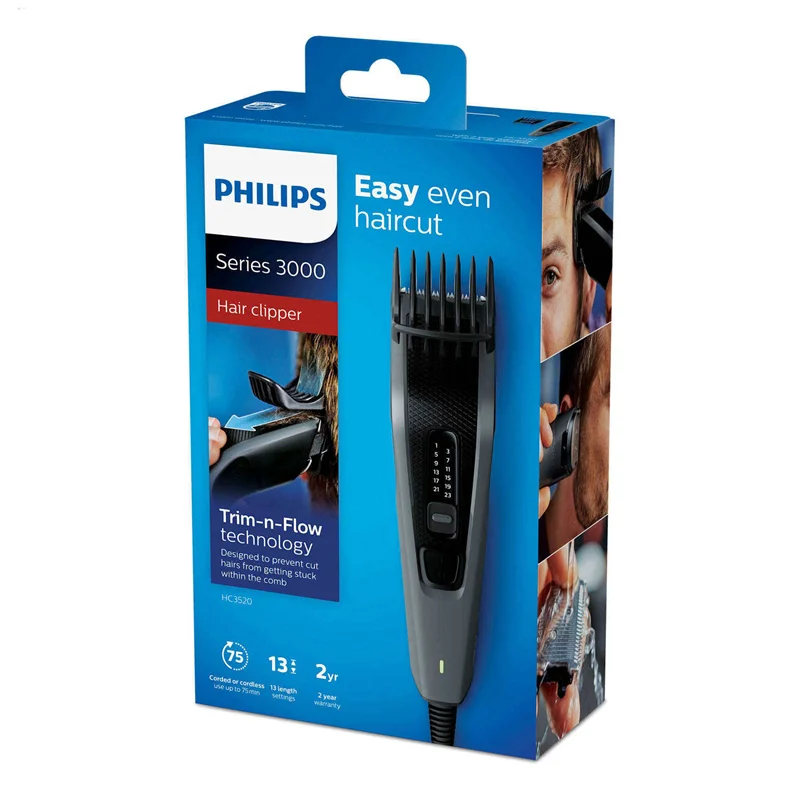 ماشین اصلاح موی سر فیلیپس مدل HC3520/15 با تکنولوژی اصلاح برش مستقیم و خط زن که قابلیت اصلاح از دامنه تنظیمات طول از 0.5 تا 23 میلیمتر می باشد و منبع تغذیه آن باطری قابل شارژ که به صورت بی سیم قابل استفاده می باشد.ماشین اصلاح موی سر و صورت فیلیپس مدلHC3520/15 دستگاه را میتوان جزو دستگاههای خوش قیمت ولی درعین حال کارآمد و بادوام این شرکت دانست.این مدل فاقد قابلیت ضد آب ولی دارای شارژ سریع باتری است.ماشین اصلاح موی سر و صورت فیلیپس مدل HC3520/15 مجهز به باتری لیتیوم یونی قابل شارژی است که درمدت زمان 8 ساعت شارژ کامل میشود و پس از آن به مدت 75 دقیقه کارآیی دارد.