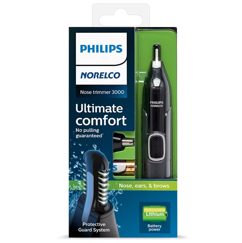 موزن گوش، بینی و ابرو فیلیپس نورلکو مدل NT3600 یک تریمر کامل برای اصلاح ایمن موهای بینی ، گوش و ابرو است. طراحی این مدل به گونه ایست که موها در حین اصلاح کشیده نشوند تا استفاده از آن برای کاربر آزار دهنده نباشد. این مدل مجهز به یک تیغه دو طرفه بوده و به همین دلیل می تواند موها را با سرعت بسیار بیشتری برش دهد.