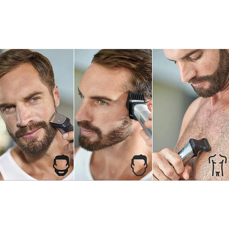 همان طور که اشاره نمودیم این محصول (ماشین اصلاح MG7720) از برند فیلیپس در واقع یک محصول ایده آل و مناسب برای اصلاح سر، صورت و بدن میباشد که اقلام همراه آن شامل: دو شانه مناسب برای اصلاح ته ریش به اندازه 1 و 2 میلی متر، یک شانه تنظیم ریش به اندازه 3 و 7 میلی متر، سه شانه مو به اندازههای 9 – 12 و 16 میلی متر، دوشانه مخصوص اصلاح بدن به اندازه 3 و 5 میلی متر است.