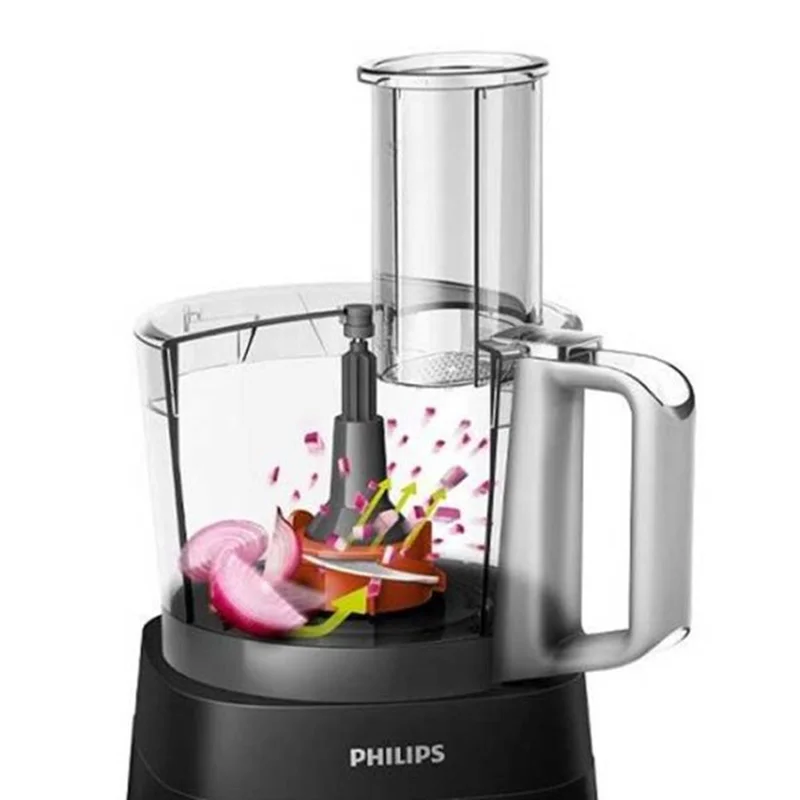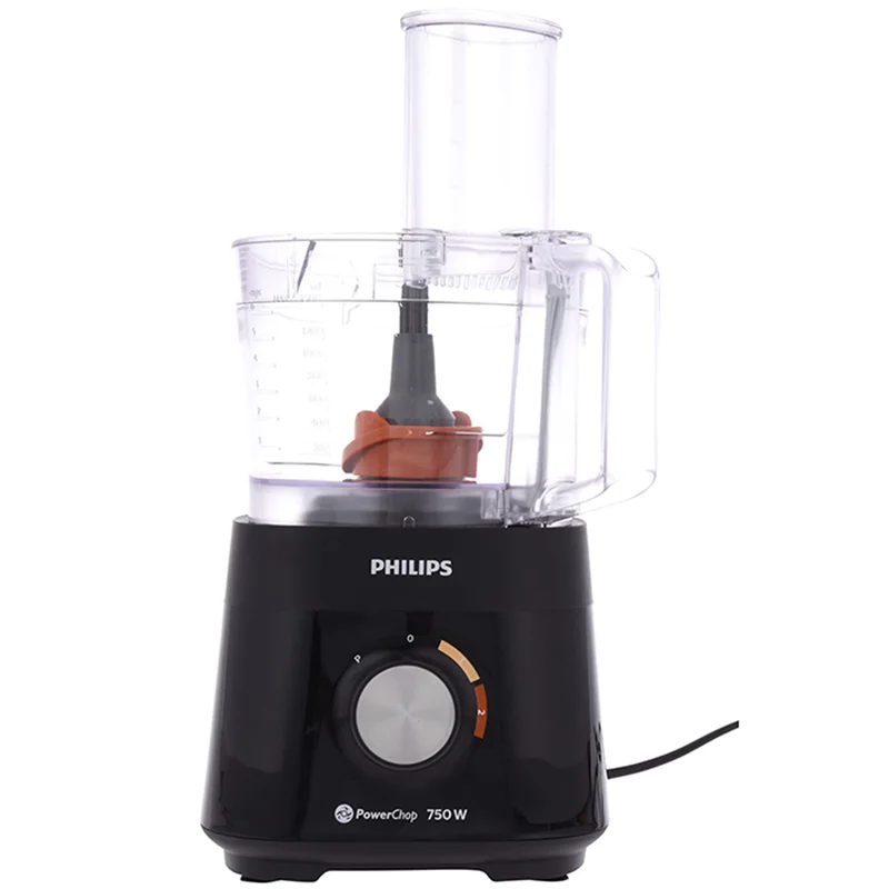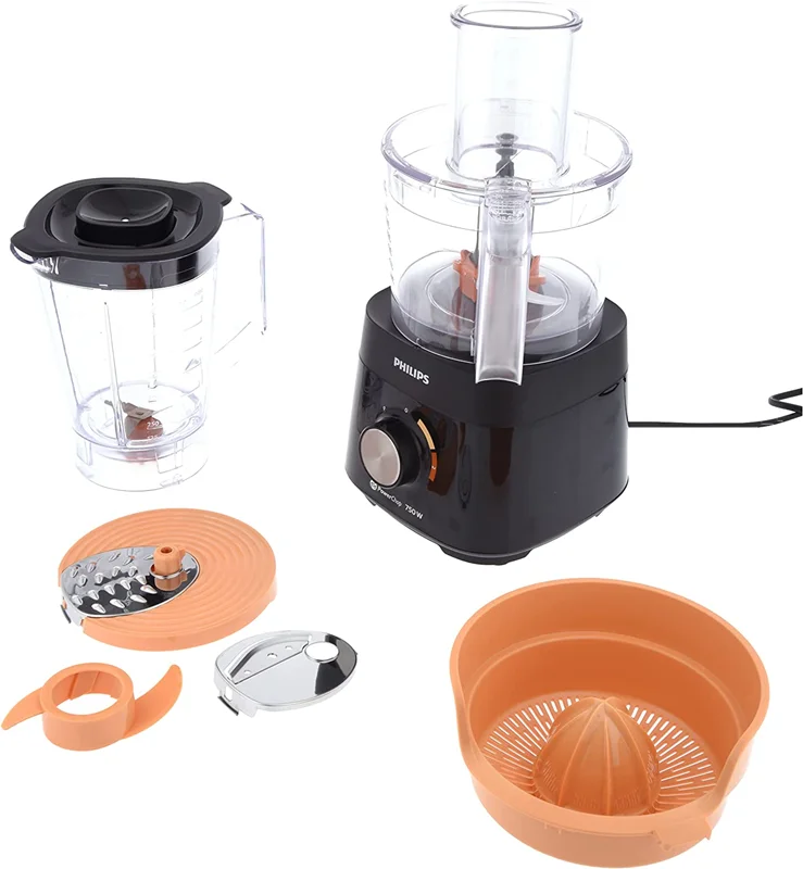 قدرت موتور دستگاه 750 وات می باشد. بدنه غذاساز فیلیپس مدل HR7302 از پلاستیک فشرده و مقاوم ساخته شده که علاوه بر جلوه ای زیبا به آشپزخانه ها، تمیز کردن بدنه آسان تر می شود. تنظیم سرعت دو حالته همراه با عملکرد لحظه ای می باشد و از اکسسوری هایی برای عملکردهای خردکن، مخلوط کن، رنده، رب و پوره ساز، خمیر زدن و …بهره می برد.ظرف خردکن غذاساز فیلیپس مدل HR7302 به صورت پلاستیکی شفاف با ظرفیت 2.1 لیتر است که 1.5 لیتر مدرج شده است.مخلوط کن غذاساز امکان مخلوط کردن و تهیه انواع اسموتی ، نوشیدنی ها، پوره کردن سوپ ، آماده کردن غذای بچه و … را فراهم می سازد و نیز قابلیت خرد کردن تکه های یخ را دارد.
