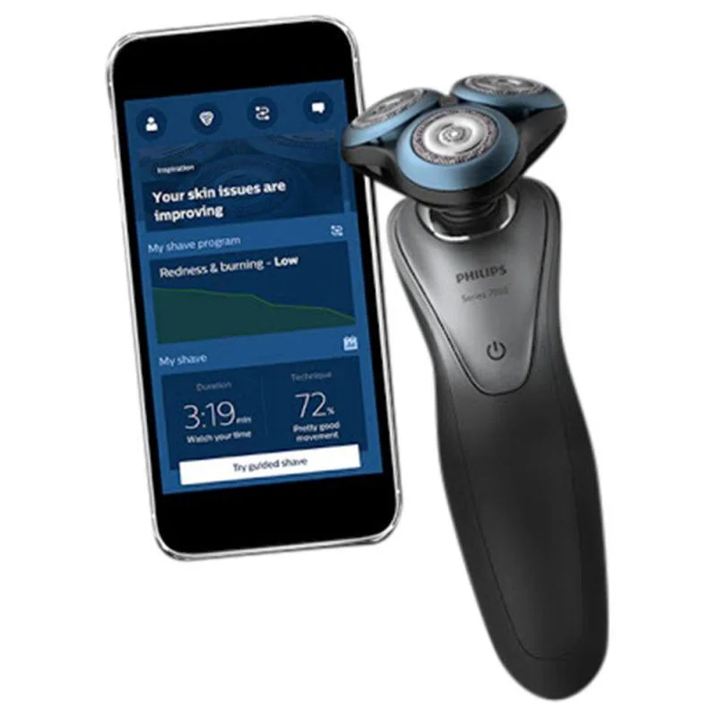 همچنین سنسوری که بر روی تیغههای این محصول وجود دارد به شما در اصلاح قسمتهای حساس صورتتان با توجه به نوع پوستتان کمک خواهد کرد.یکی از مزایای بسیار خوب این محصول که برای کاربرانی که پوستشان برایشان مهم است، قابلیت اتصال این محصول با برنامه یا اپلیکیشن ریش تراش Groom Tribe فیلیپس Philips است که به شما این امکان را میدهد تا برای اصلاحتان برنامه ریزی کنید و با توجه به پوست صورتتان ریش تراش را از طریق اپلیکیشن تنظیم نمایید.